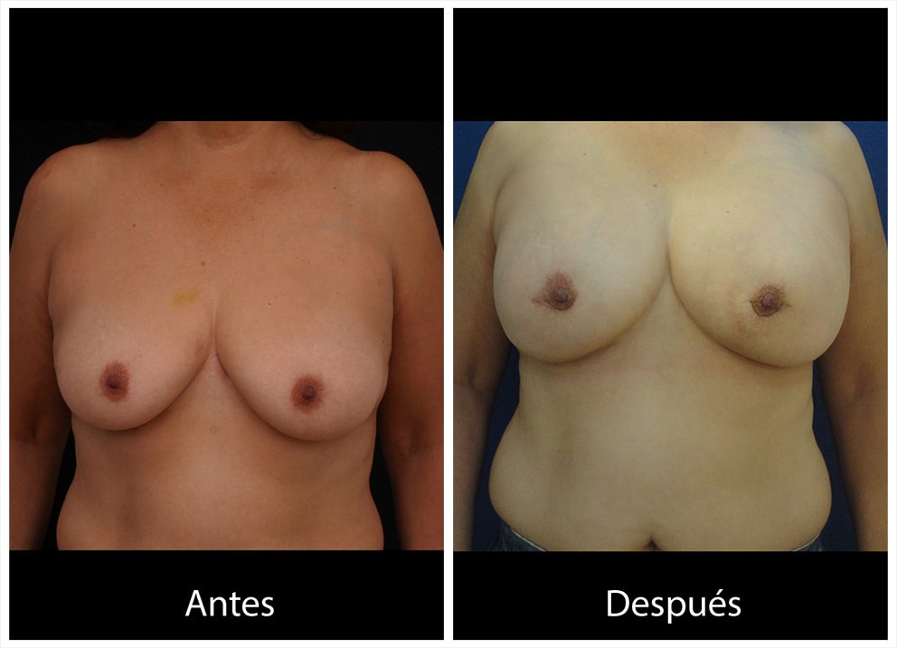 En estos casos muy seleccionados se puede realizar el procedimiento y la reconstrucción con implantes, este deberá ser realizado por el cirujano plástico por el alto riesgo que existe de exposición de los implantes, inclusive en manos calificadas el riesgo es muy alto.