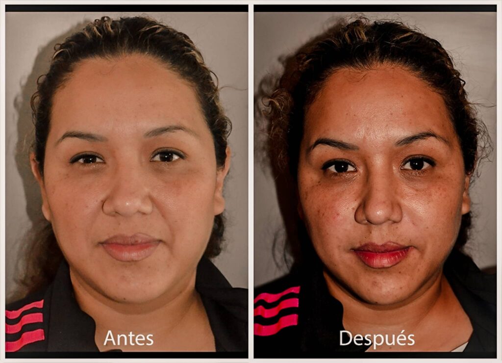 Es el complemento ideal para el rejuvenecimiento facial sin cirugía en casos selectos, se puede rellenar con ácido hialurónico los surcos alrededor de las mejillas o de la boca, obteniendo inmediatamente una apariencia más joven.